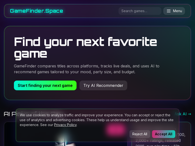 一个利用AI技术的游戏发现平台。用户只需用自然语言描述自己想玩的游戏(例如“类似《星露谷物语》但故事更复杂的合作游戏”),AI就能精准推荐符合需求的游戏,提供个性化的游戏推荐体验。