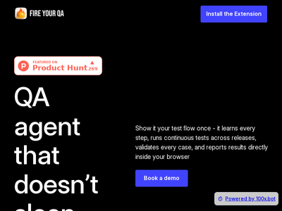 fireyourqa.today 是一个提供基于AI的自动化测试平台的网站,主要面向开发者。它旨在通过端到端、无代码/低代码、自愈合等功能,帮助企业自动化其软件测试流程,减少对传统QA的依赖,提高测试效率和质量,并与现有DevOps工作流无缝集成。
